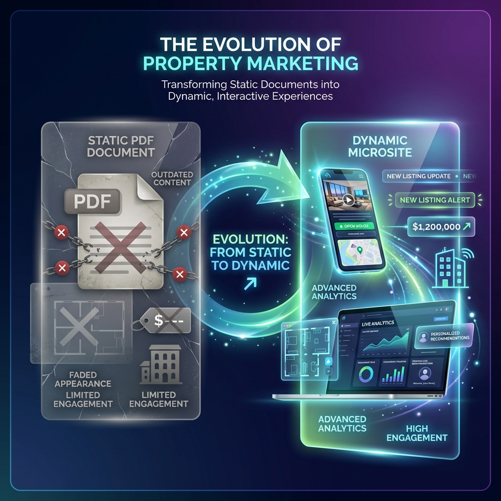 PDF brochures were revolutionary in 2005. In 2025, they're holding your sales back. Here's why smart developers are switching to dynamic property microsites that update in real-time, personalize for each buyer, and actually track engagement.